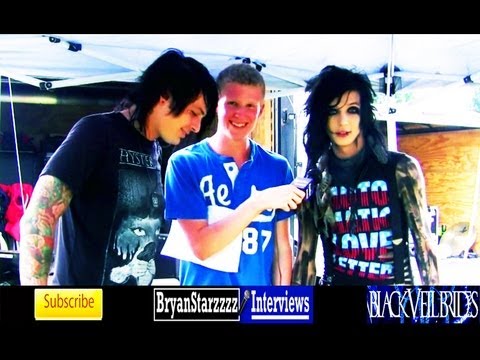 I was sitting in Matt’s lap as I laid my head against his shoulder I relaxed as his arms went around my waist, “what time do you go on?” I mumbled still tired. He chuckled a little, “3pm. But I have an interview with Andy..” he said as I looked at him smiling, “Alright let’s get ready.” He laughed as he smiled, “I already am.” I stuck my tongue out as he laughed before kissing me. I got dressed in, a nice purple shirt with a jean skirt, with black combat boots and a green beanie. I walked out to see Matt getting his shoes on. I hugged him as he jumped a little to look at me; I giggled as he rolled his eyes; once we got to the blue tent next to Black Veil Brides trailer. I smiled at Andy as he ran up and hugged me, “Your on tour with us.” “Yuuup! But I have to work too.” He sighed, “Fine.” I giggled as I hugged him. “Go do your damned interview.” He laughed as he and Andy were talking to Bryan Stars. (watch the interview:D)